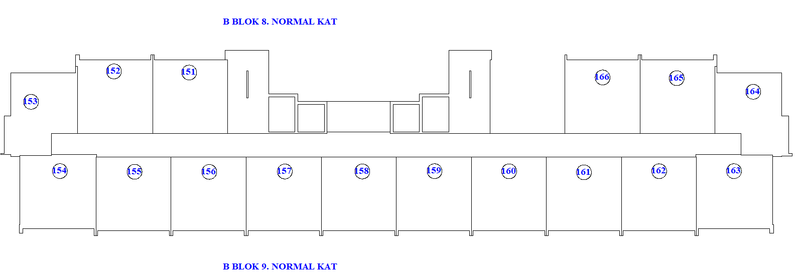 B/C Blok : 166 x 1+1 Daire , 9 Kat